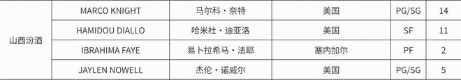 CBA官方:山西注册37岁后卫马尔科-奈特,取消注册黑根斯