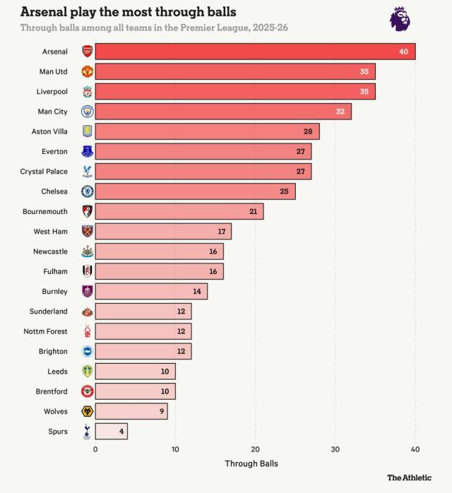 竞技网提供的一组更微观的数据或许能够说明一些问题:在直传球方面,阿森纳是开季以来的英超“冠军”,共计送出40次直传,紧随其后的是曼联和利物浦(各35次),这一榜单垫底的是枪手的北伦敦死敌热刺,只有4次!