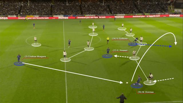 与此同时,中场球员地面直塞或长距离过顶、萨卡在右路插上,是另一个常见套路。相对来说,连续复杂传切配合后送出致命直塞,就少见得多,毕竟对方此时早已在禁区内外扎紧篱笆——早有大量事实证明,老派传控型球队把对手摁在禁区,然后从左传到右,从右传到左,大多数时候都是自己给自己上难度的绝望踢法。